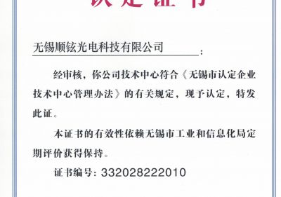 無(wú)錫市企業(yè)技術(shù)中心證書